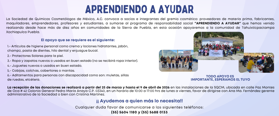 La Sociedad de Químicos Cosmetólogos de México A.C. (SQCM) es una asociación que agrupa a los técnicos científicos, investigadores y profesionales que realizan actividades relacionadas con la ciencia cosmética.